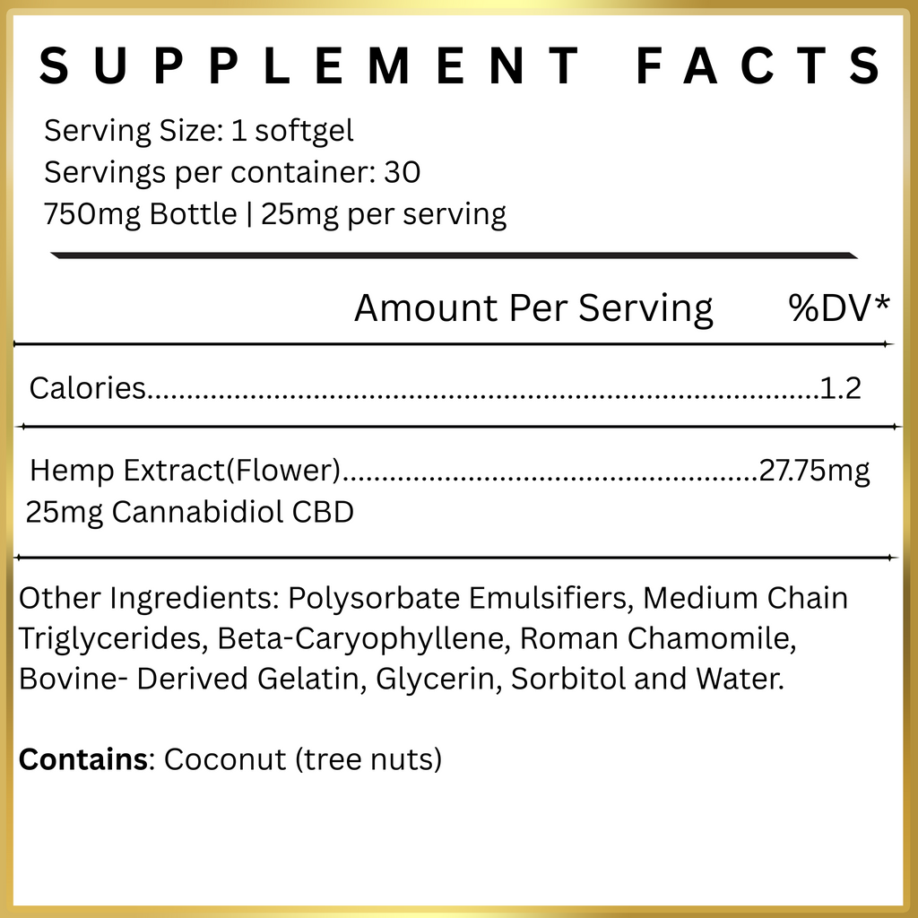 - · 25mg Broad Spectrum CBD per softgel