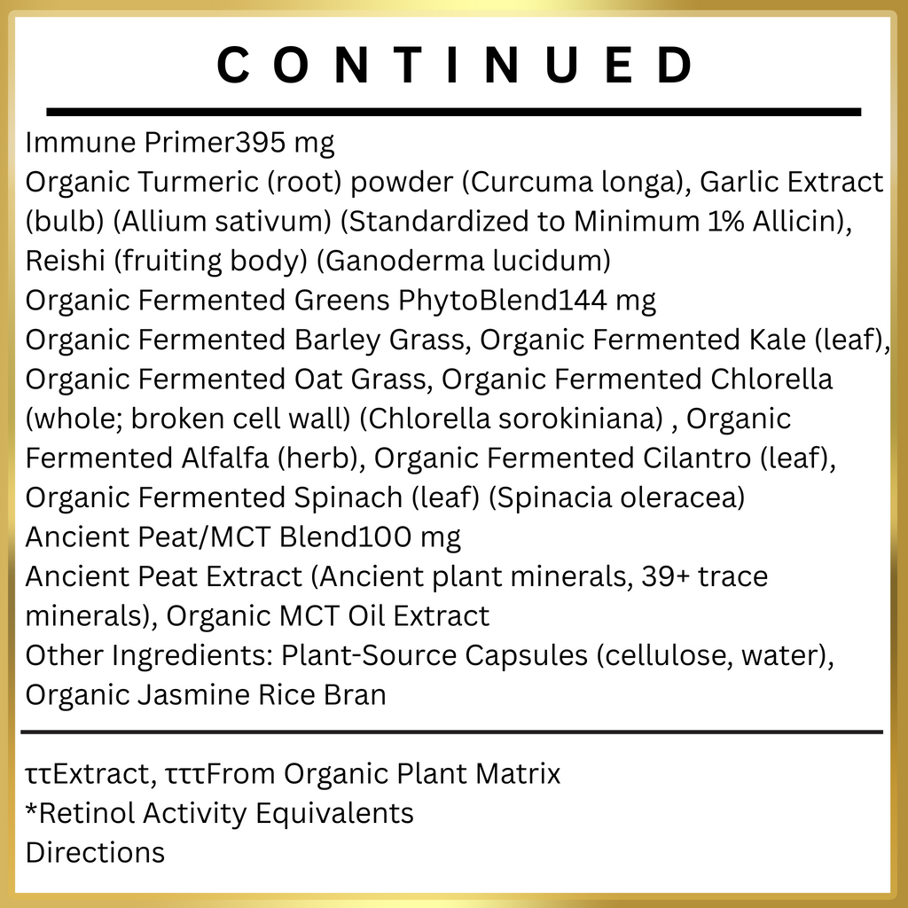 · immune primer (395 mg): organic turmeric (root) powder; garlic extract (≥1% allicin); reishi (fruiting body)
